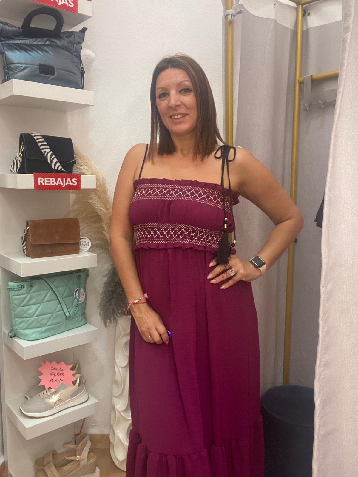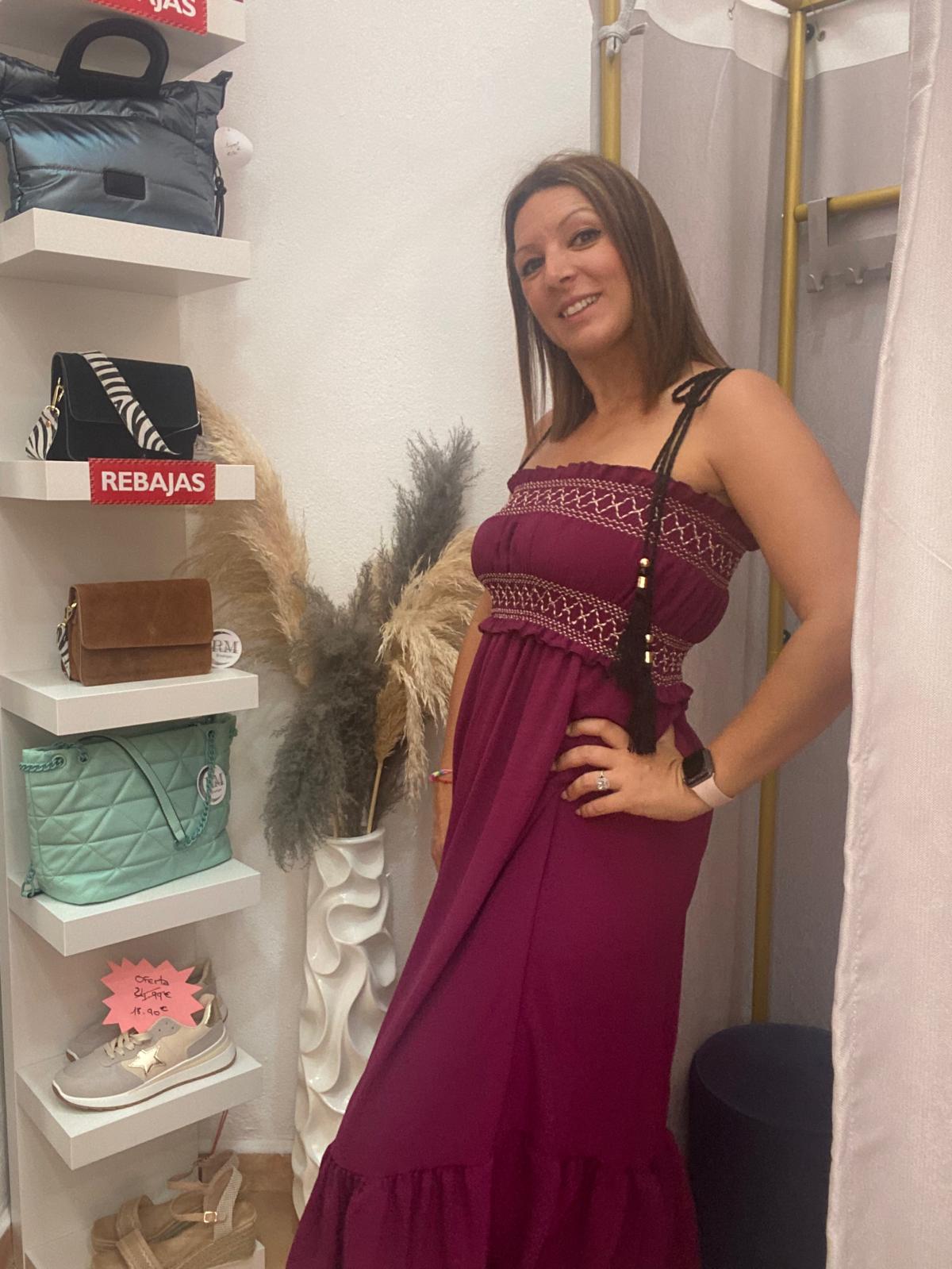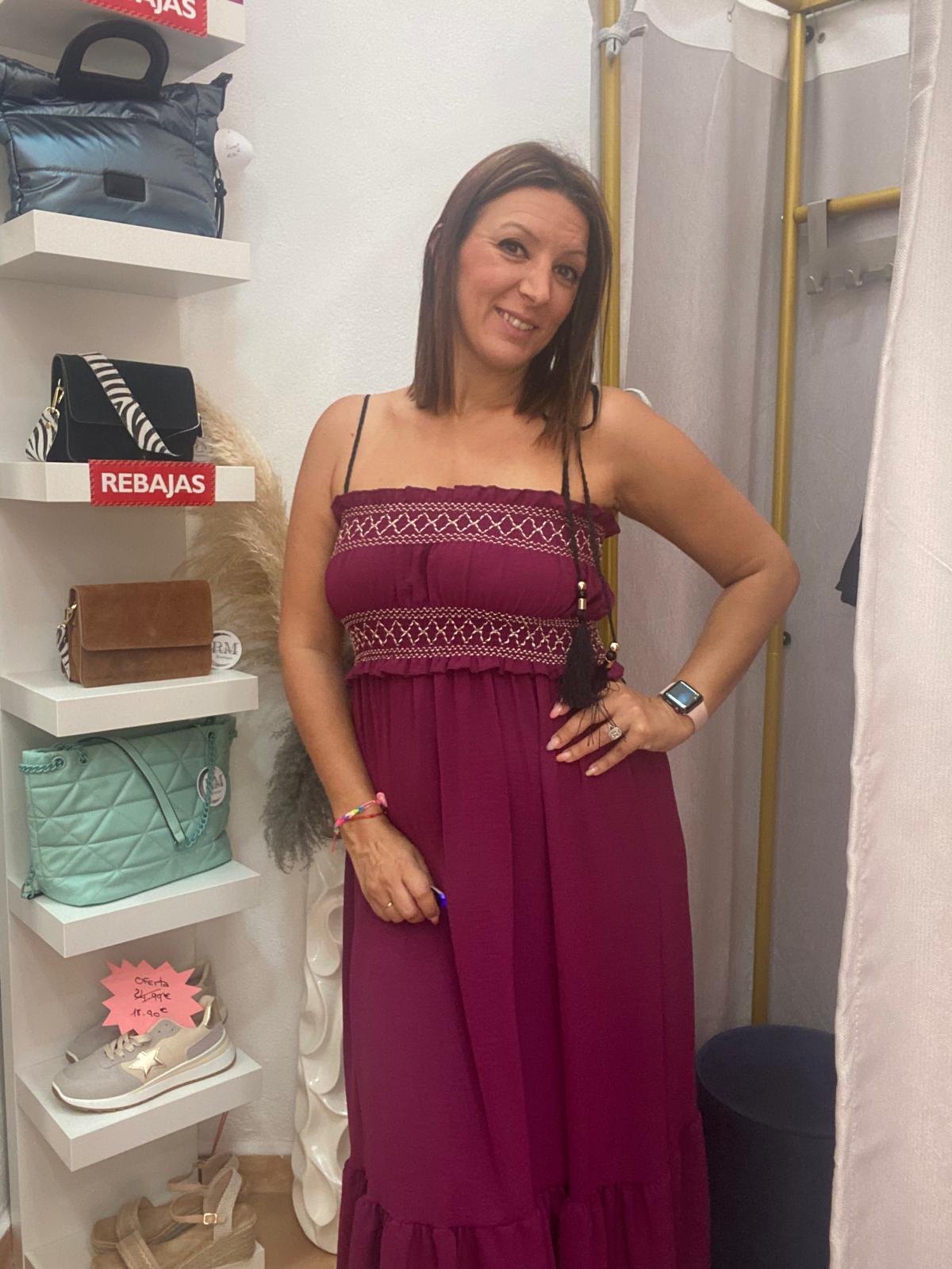 Vestido largo con pecho fruncido.