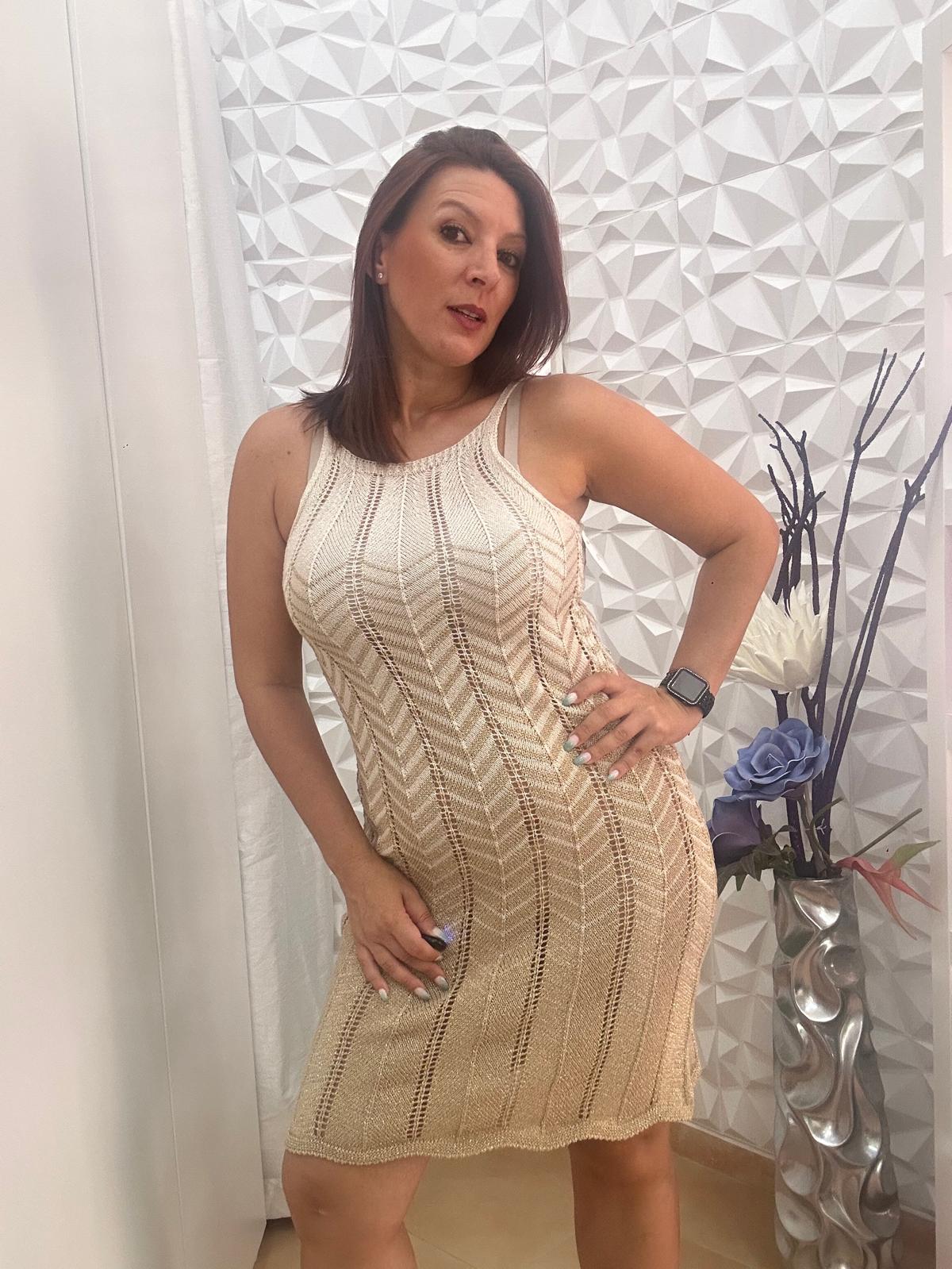 Vestido hilo dorado.
